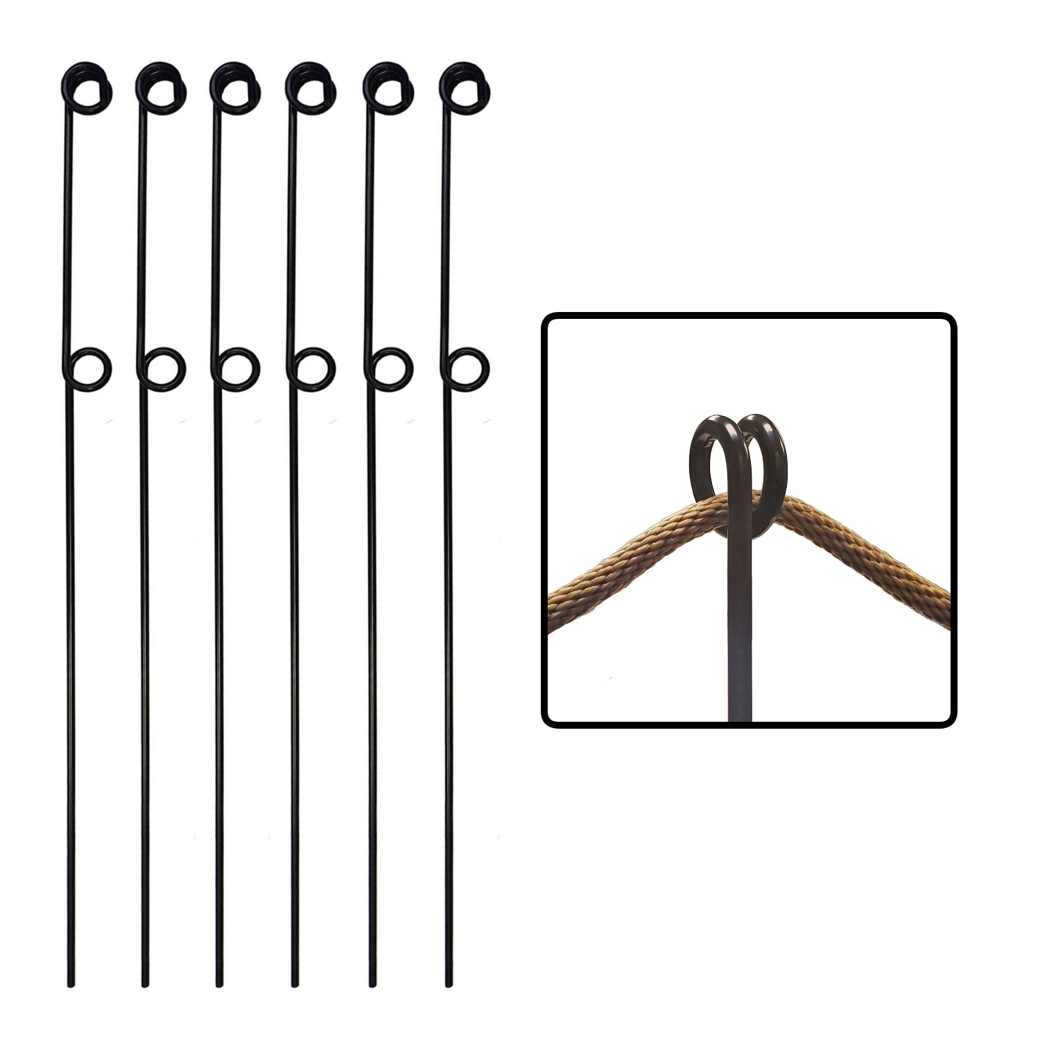 The stakes were easily installed and looked great with the 3/8" natural fiber rope installed through the single eye stakes that we purchased.